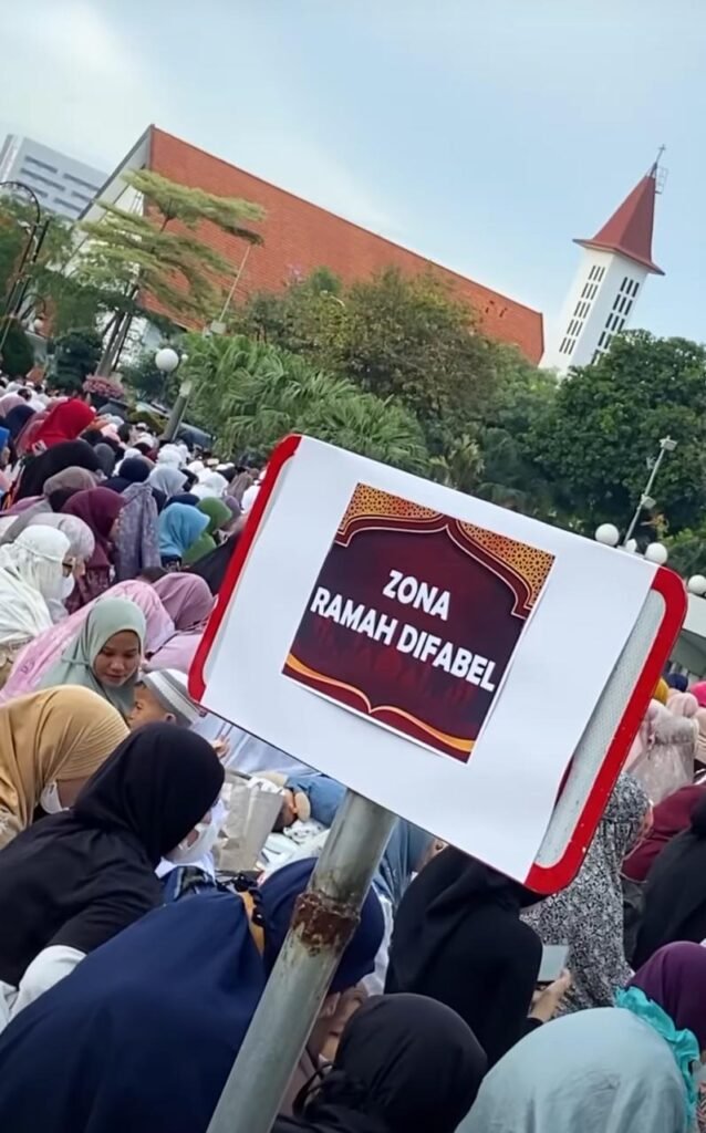 “Sehingga hari ini kita mendampingi khatib dengan difabel, sehingga yang memiliki kekurangan pendengaran, atau apapun bisa mengikuti Salat Id ini,” imbuhnya.